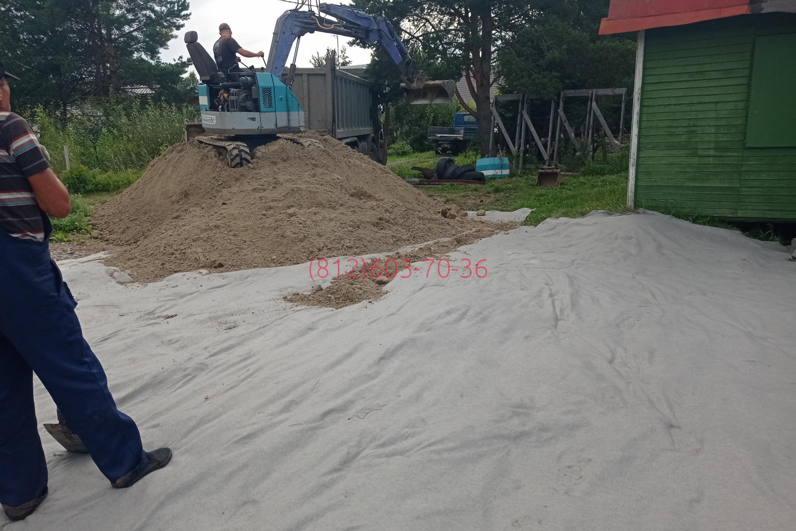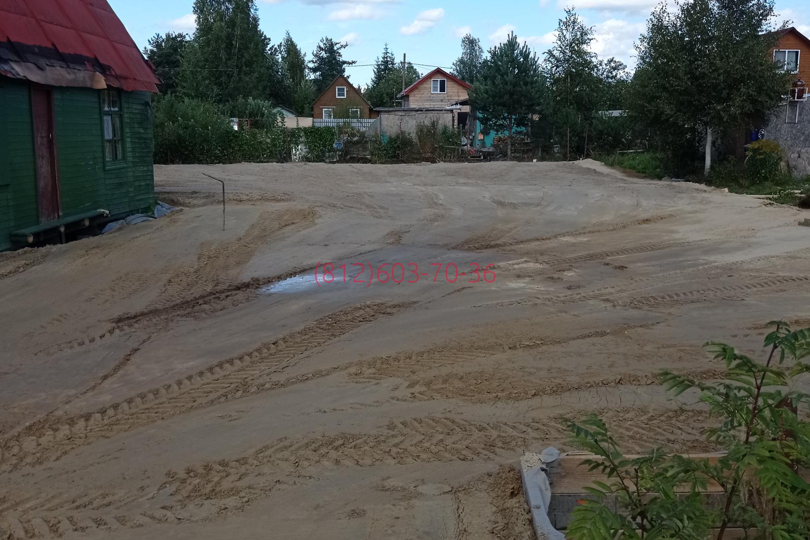 2021-08-05 Поверхностная отсыпка супесью торфяного дачного участка в Дунае, Всеволожский район Ленобласти.