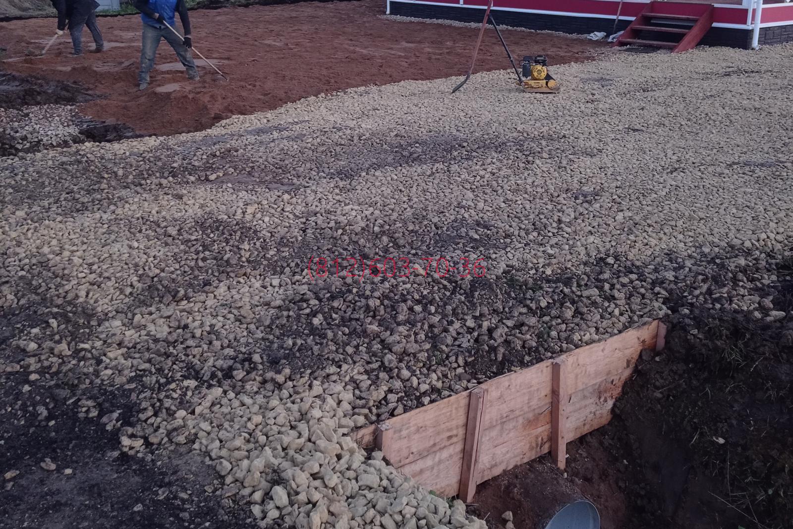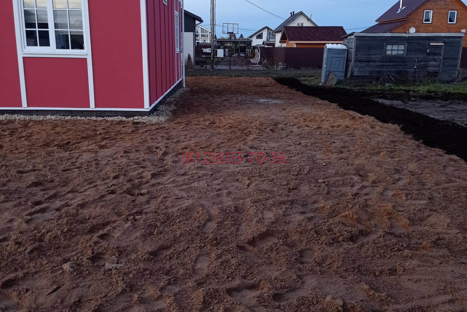 2021-11-11 Планировка дачного участка в котеджном поселке Южная Дача, Ломоносовский район Ленинградской области. Монтаж заезда, организация парковки, поверхностная отсыпка песком.