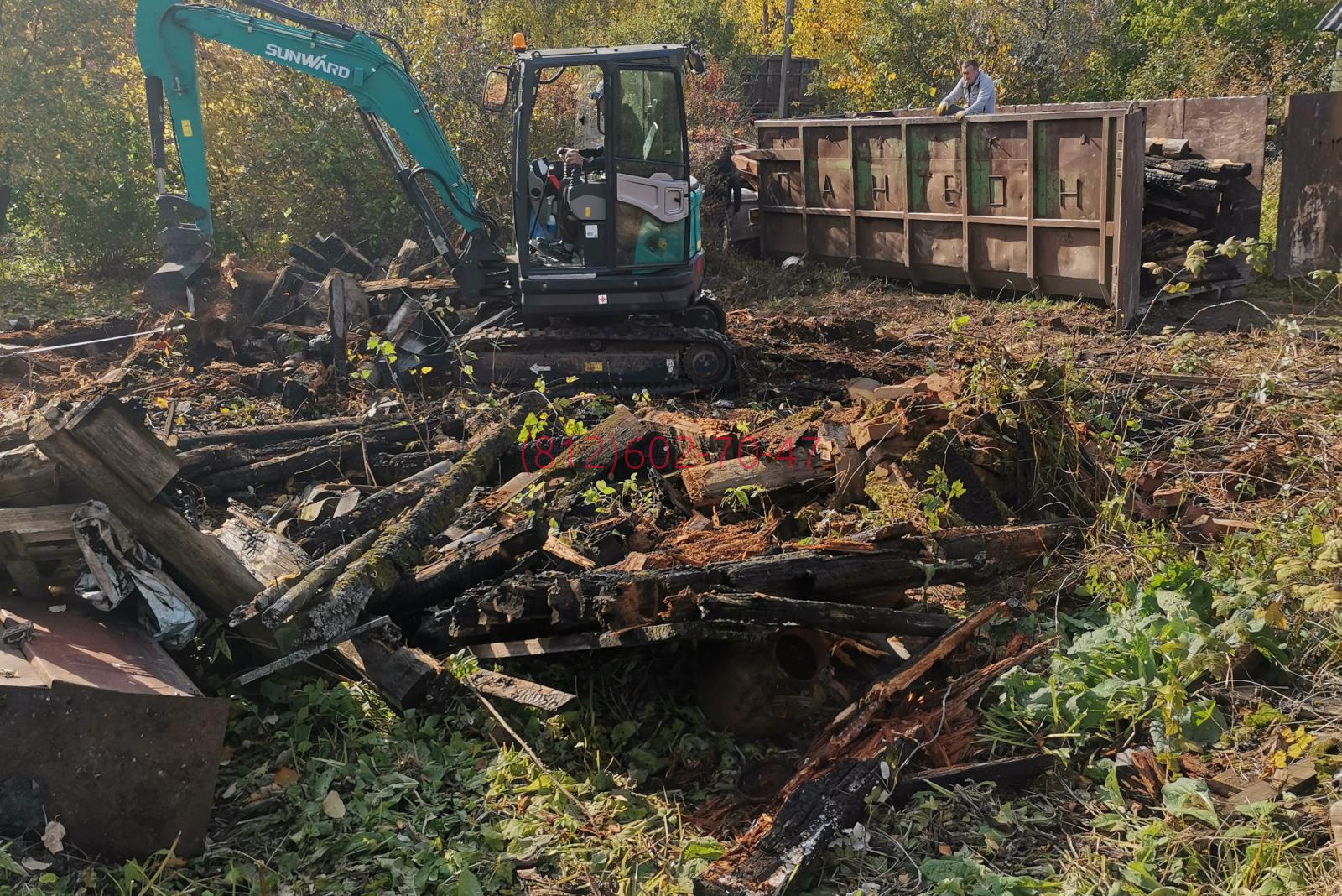 2022-10-08 Снос и вывоз сгоревшего сруба в Келло, Лужский район Ленинградской области.